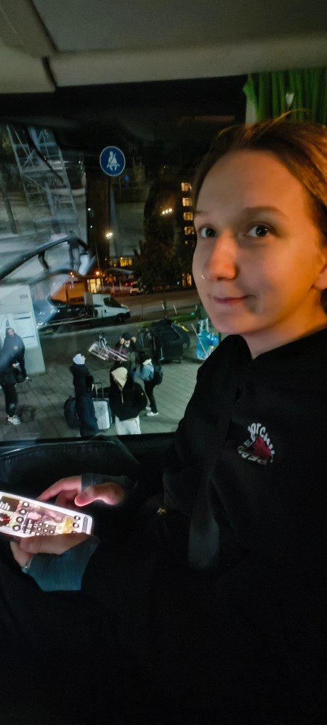 Kuskil kell seitse hommikul avastasime ennast olevat Kaunases (vist). Bussijuhid ajasid agaralt kõiki bussist välja, meie unesegastena ei saanud midagi aru. Kuulasime sõna, võtsime enda kotid kaasa ja vaatasime lollide nägudega ringi. Paari minutiga sai õnneks selgeks, et me ikkagi petta ei saanud ja meid Kaunasesse ei jäeta. Me pidime lihtsalt teise bussi kolima – rohelise FlixBusi asemel saime sõita mingi Leedu korvapalli tiimi bussiga.